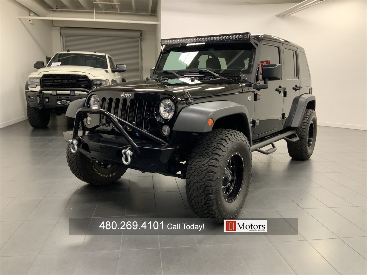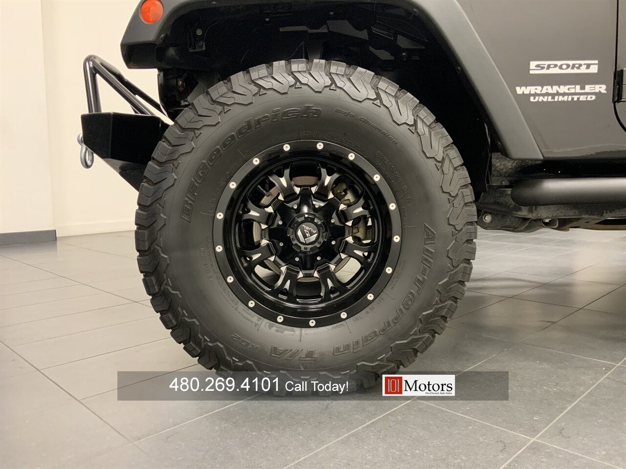101 Motors is proud to present this super clean, one owner 2015 Jeep Wrangler Unlimited Sport. This JK is equipped with a 285 horsepower 3.6L V6 mated to a 5-speed automatic transmission. This Wrangler features a 2.5 inch TeraFlex lift and sits on 17 inch Fuel wheels wrapped in 35 inch BFG K02 all-terrain tires. Upgrades also include a paint matched DV8 slant back hardtop, Poison Spyder front bumper and skid plate, N-Fab steps, 50 inch light bar and Smittybilt receiver hitch. This locally owned Jeep has been meticulously maintained and it shows. You don’t want to miss this incredible opportunity, call today!!