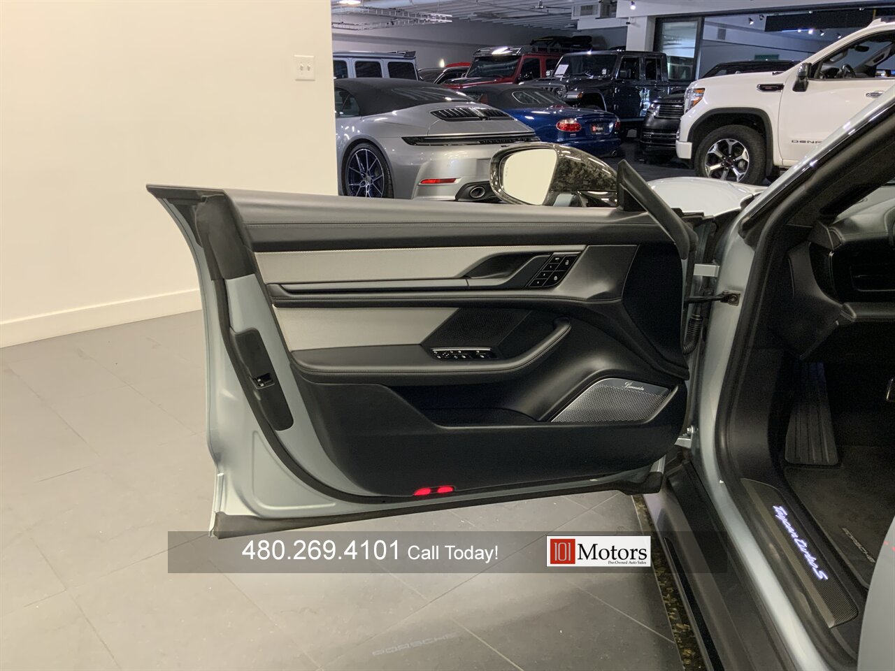 101 Motors is proud to present this stunning 2021 Porsche Taycan Turbo S finished in Dolomite Silver Metallic. This 750 horsepower AWD electric sedan earns an EPA estimated 201 miles of range on a full charge. This Taycan is loaded with features including heated and ventilated front seats, surround view camera, fixed panoramic glass roof, Burmester 3D surround sound system, adaptive cruise control and more. Exterior upgrades include carbon fiber front splitter, side skirts, rear spoiler and rear diffuser along with 21 inch VR Forged wheels. You don’t want to miss this incredible opportunity, call today!!