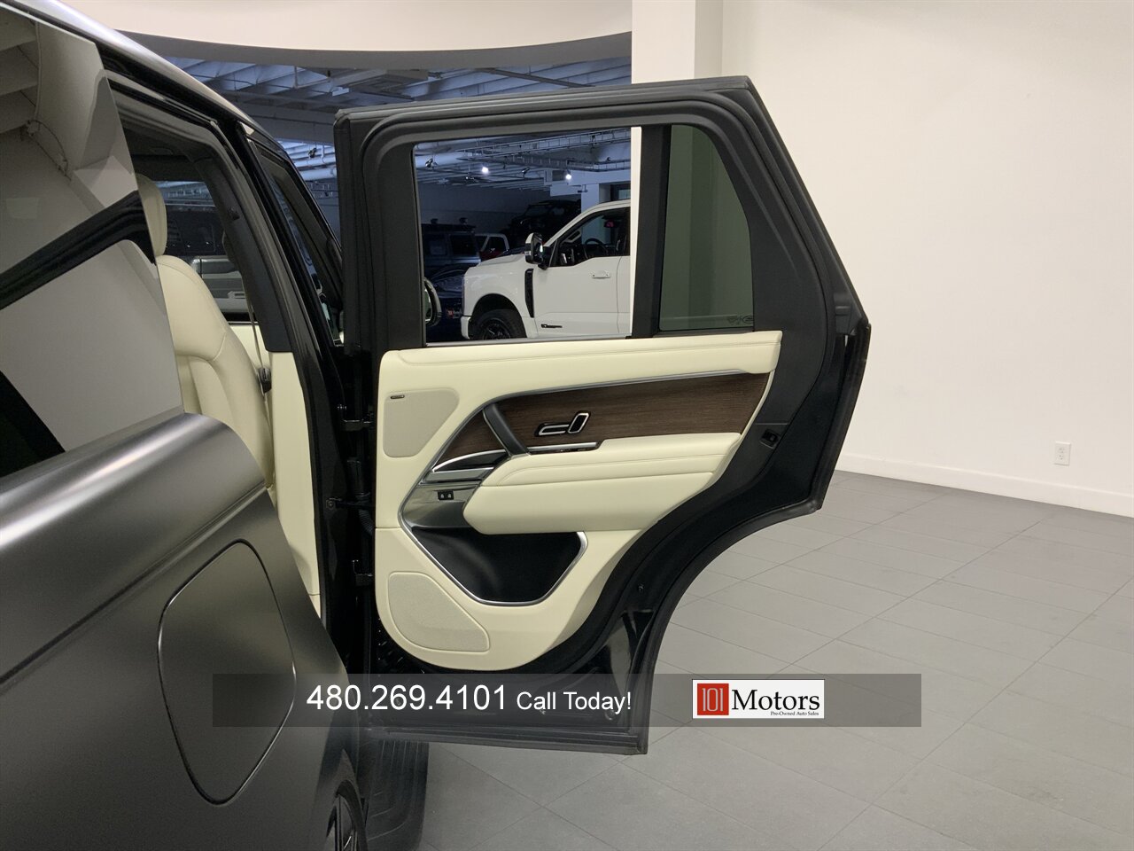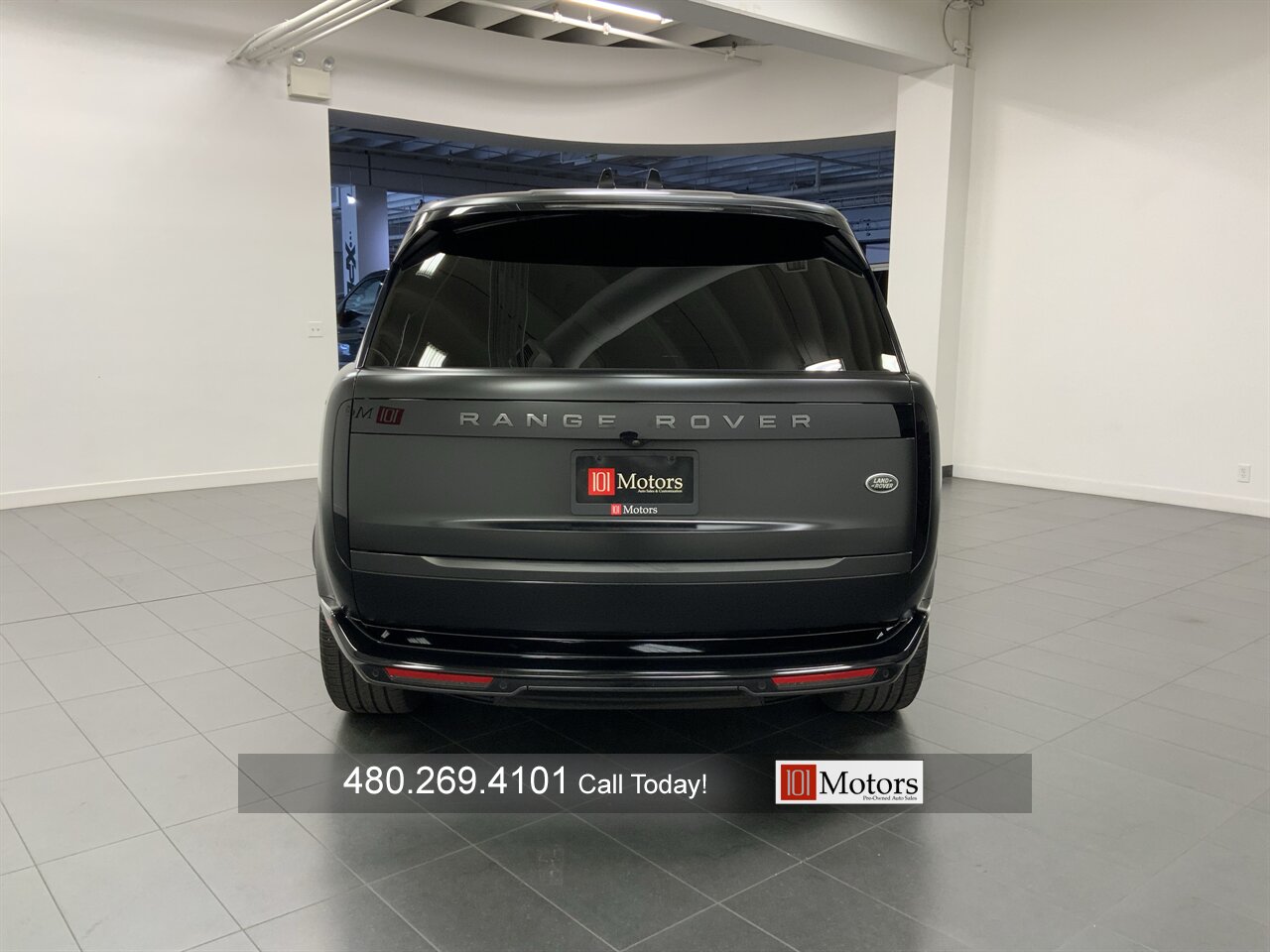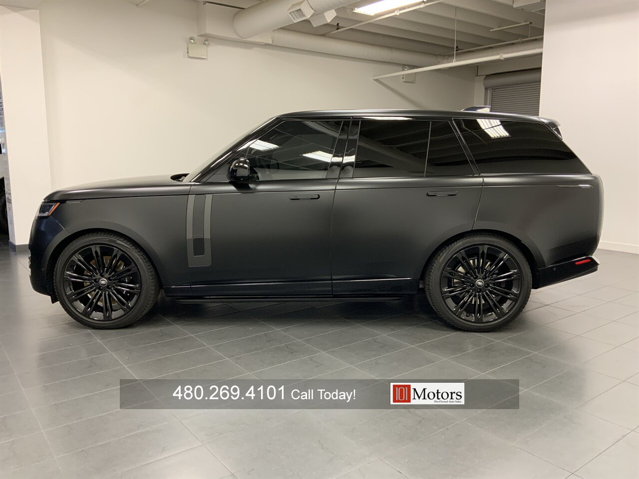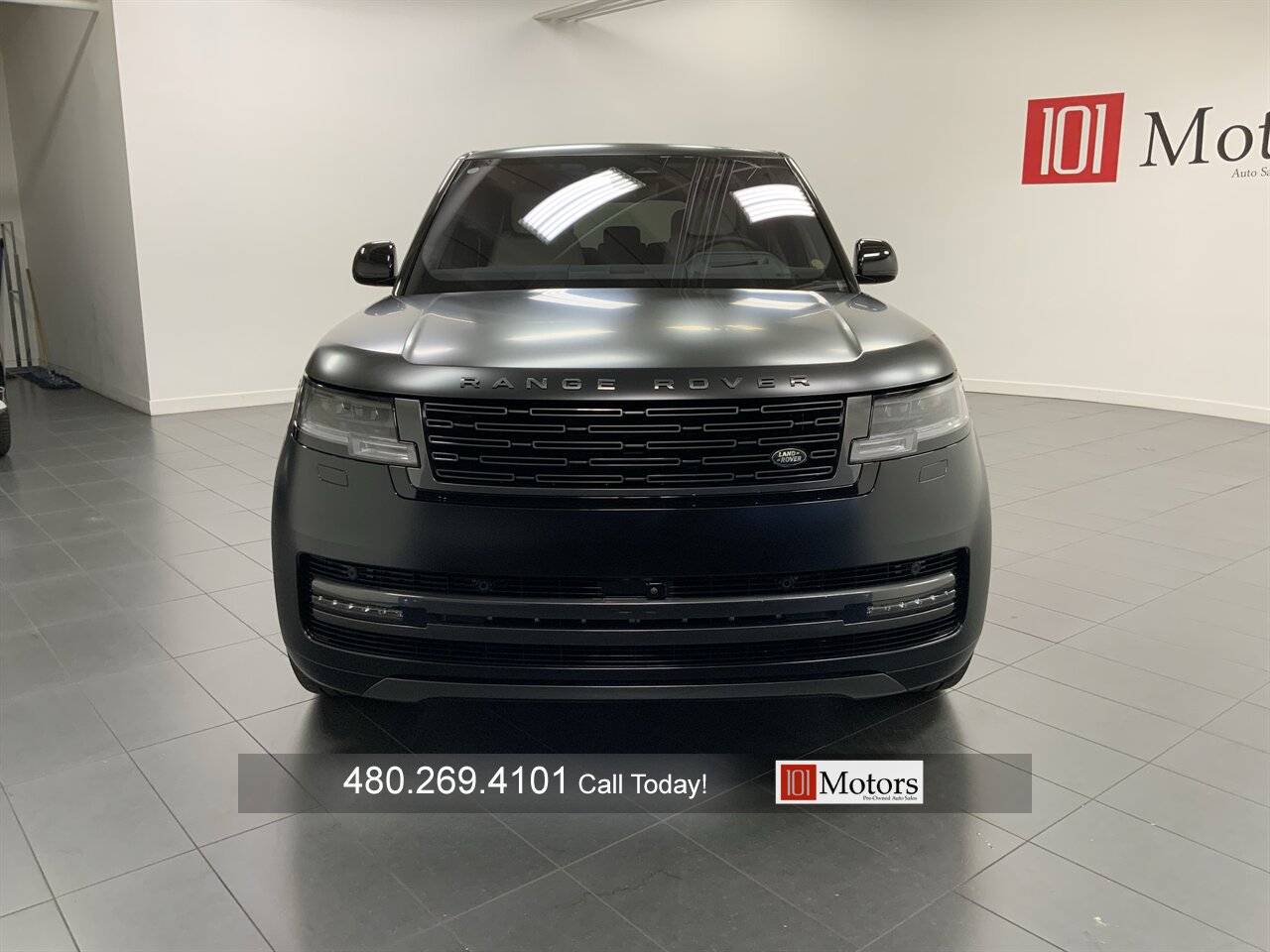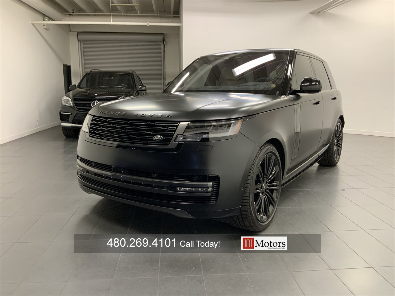 101 Motors is proud to present this absolutely stunning 2023 Land Rover Range Rover finished in Santorini Black Metallic wrapped in matte paint protection film. This AWD luxury SUV is equipped with a 523 horsepower 4.4L Twin Turbo V8 mated to an 8-speed automatic transmission. This Range Rover features heated and ventilated front seats, panoramic roof, center console refrigerator compartment, Meridian surround sound system, 23 inch gloss black wheels, surround view camera and more. You don’t want to miss this incredible opportunity, call today!!