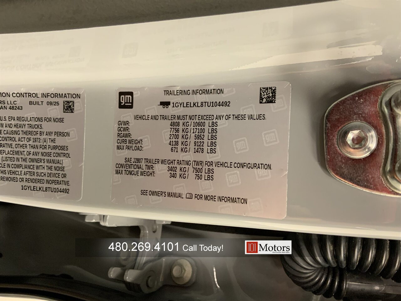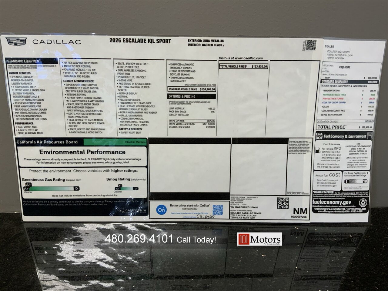 101 Motors is proud to present this absolutely stunning 2026 Cadillac Escalade IQL Sport finished in Luna Metallic. This dual motor AWD electric SUV makes 750 horsepower and earns a Cadillac-estimated 460 miles of range on a full charge. This Escalade is loaded with features including heated and ventilated front seats, heated second row seats, head-up display, panoramic glass roof, surround view camera, 55 inch curved display, wireless charging and more. You don’t want to miss this incredible opportunity, call today!!